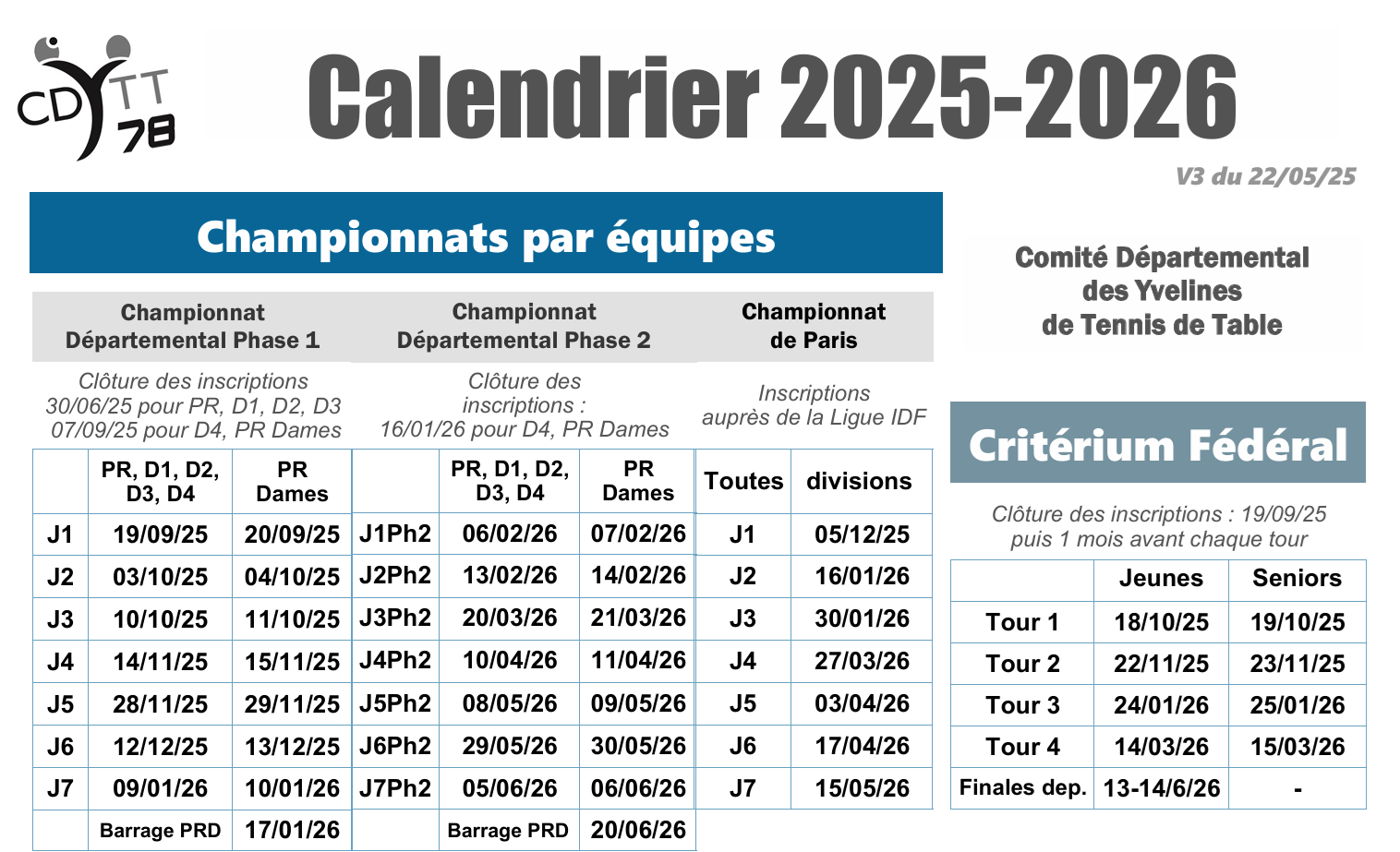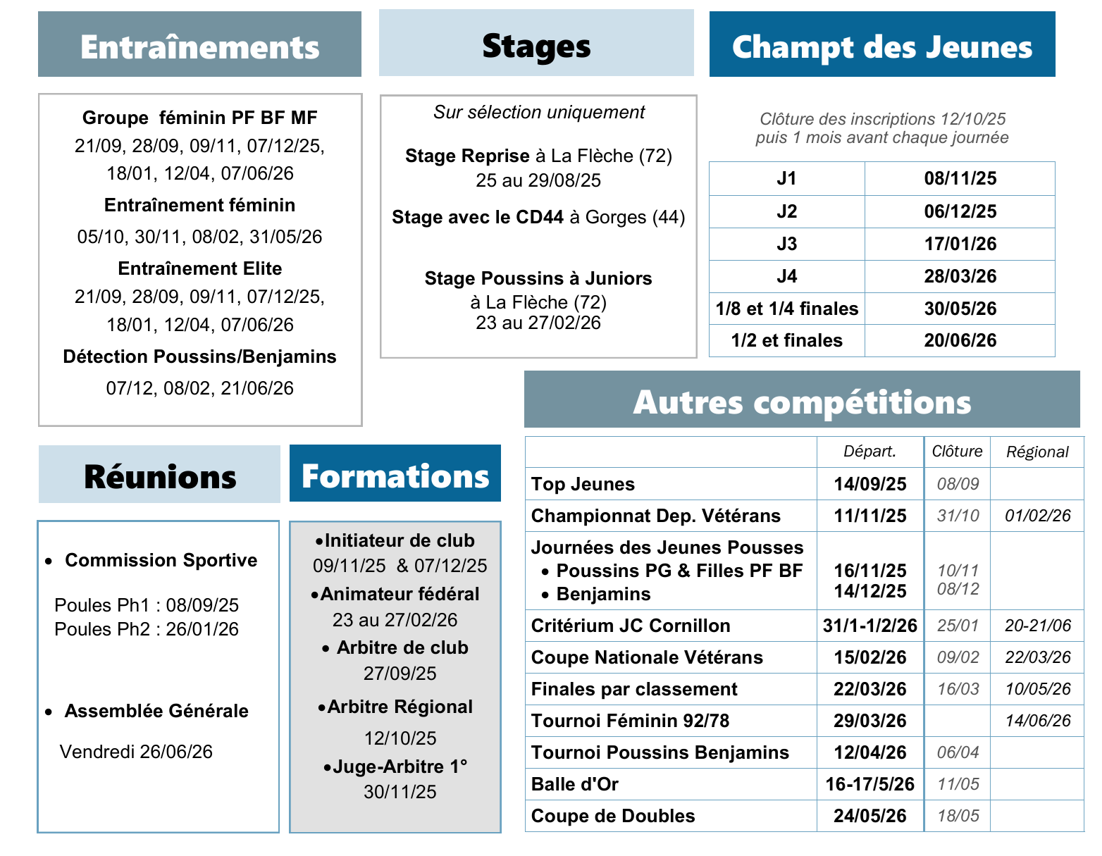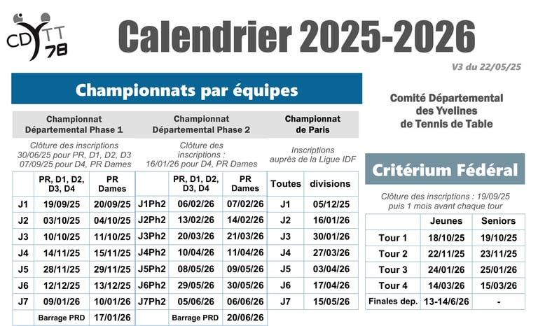 Découvrez notre calendrier d'ouverture et les événements à venir au club de tennis de table.