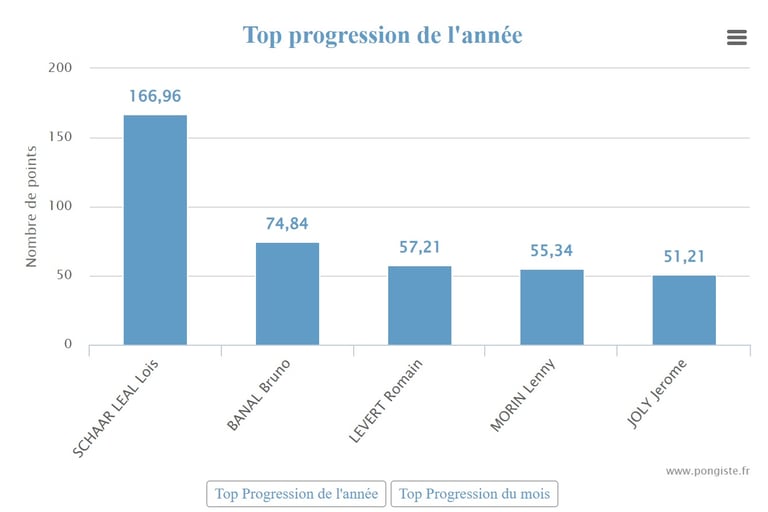 La phase 1 a mis en lumière cinq joueurs s’étant particulièrement distingués par leur progression au sein du club. Leur engagement à l’entraînement, leur régularité en compétition et leurs progrès techniques et tactiques ont permis une nette amélioration de leurs performances. Ces évolutions positives reflètent le travail accompli et constituent un excellent signal pour la suite de la saison.